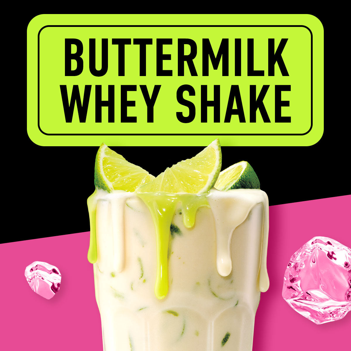 • Fruchtige Whey-Sorten (oder einfach deinen Favorite) mit kalter Buttermilch oder Kefir mixen.