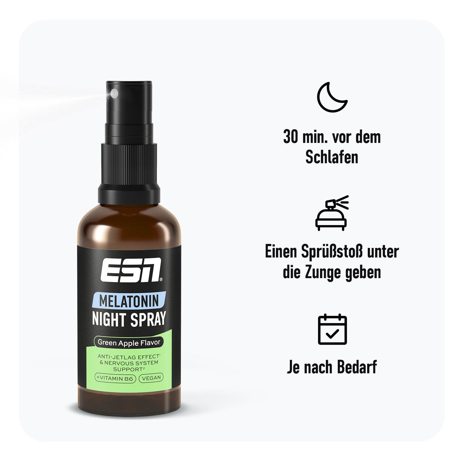 Sleep tight, every night – mit unserem Melatonin Night Spray unterstützt du deinen Schlaf, denn es hilft dir schneller in den Schlaf zu finden, um fit und erholt aufzuwachen.¹ Zusätzlich enthält das Spray Vitamin B6, das zu einer normalen Funktion des Nervensystems und des Energiestoffwechsels beiträgt. Der ideale Support für deine Leistungsfähigkeit.³