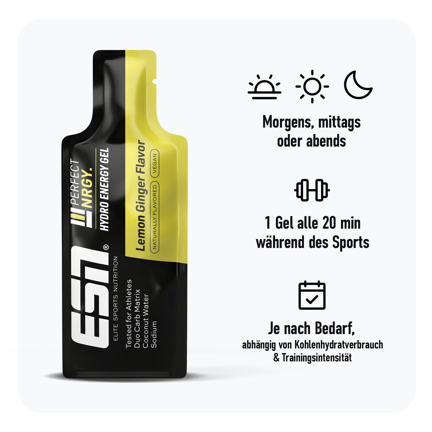 Jetzt kannst du zwischendurch mit Shakes und Co. Nährstoffe auftanken oder die leichte Lösung wählen: unser Perfect NRGY Energy Gel – effektiv, handlich und easy zwischendurch einzunehmen. Die innovative Formula mit einer von Experten empfohlenen Dual-Carb-Matrix, und einem Hydration-Komplex mit Kokoswasserpulver und einem hohen Natriumanteil von 188 mg liefert deinem Körper alles, was du für schnelle und langanhaltende Energie sowie Hydration und Leistungsfähigkeit während intensiver Ausdauereinheiten brauchst.1,2 Und das Beste: Unser Gel ist frei von Fruktose und dadurch für viele Ausdauerathleten besser bekömmlich.