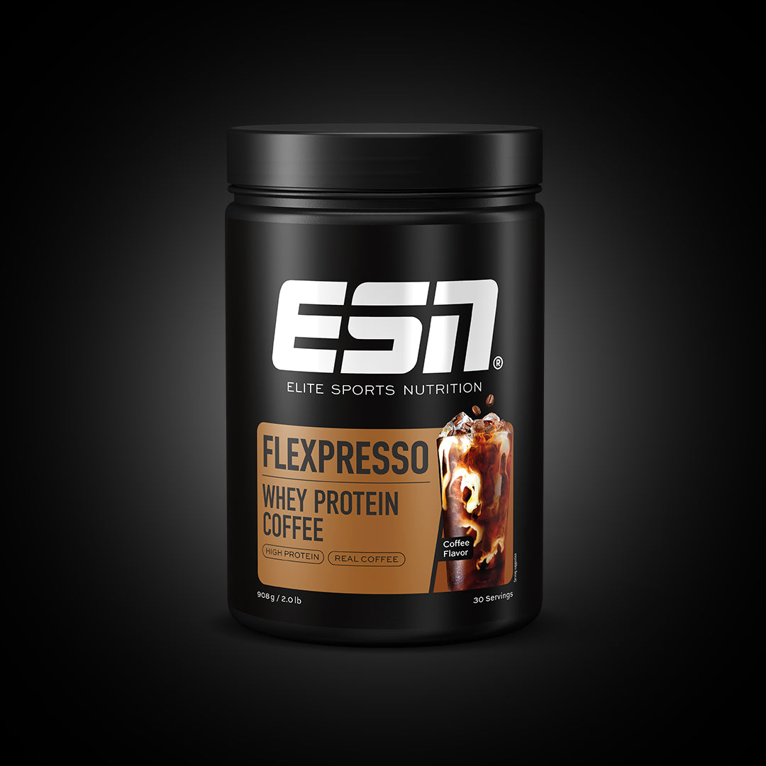 „Als Erstes gibt‘s einen cremigen Protein-Kaffee, der echten Kaffee mit bis zu 22 g Molkenprotein kombiniert. Ideal für den Start in den Tag oder als Pre-Workout-Getränk. Ich mixe hierfür 30 g Flexpresso mit 350 ml Kokos-Reis-Milch. Geheimtipp: Mit einem Eiswürfel und Glasstrohhalm schmeckt's wie ein cremiger Eiskaffee aus der Eisdiele!“