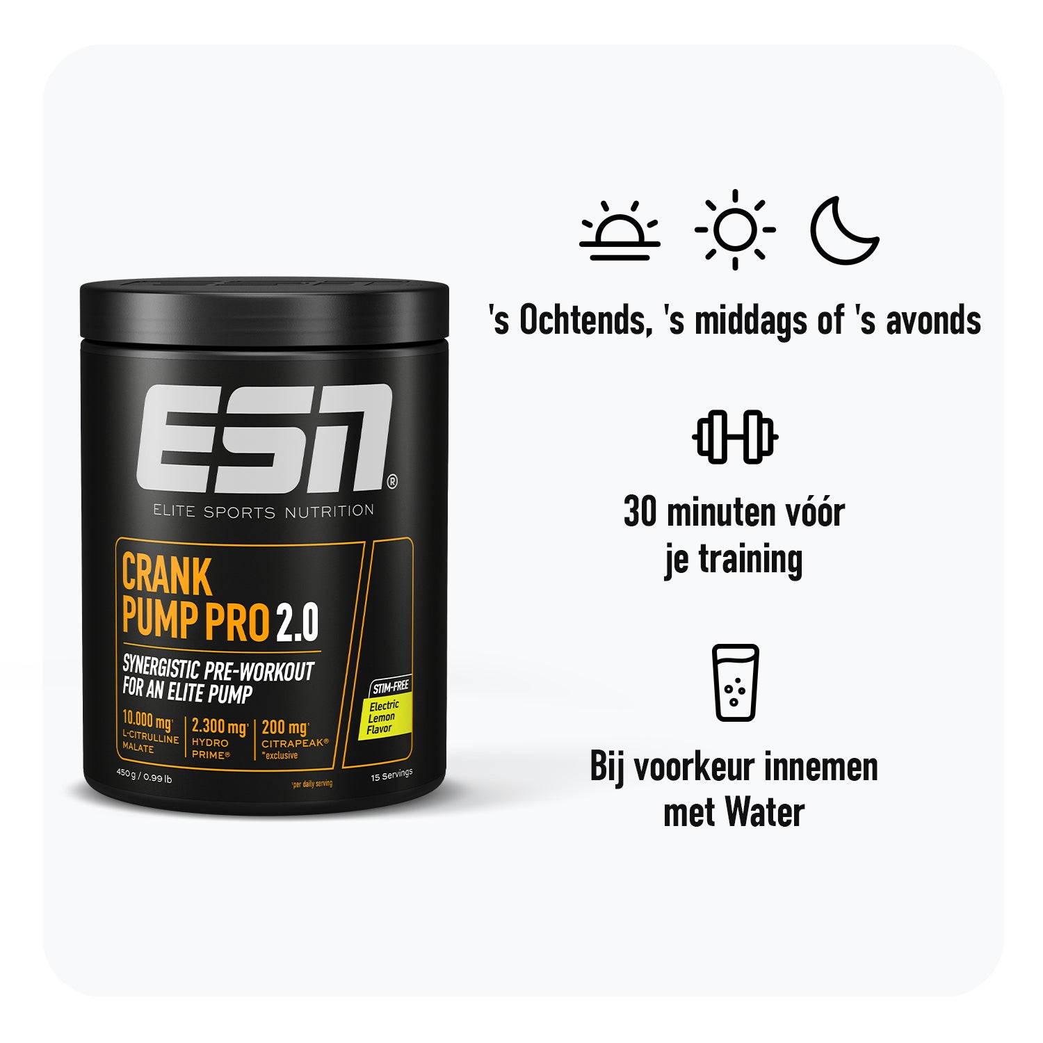 De nieuwe standaard in pump technology: Crank Pump Pro 2.0 doorbreekt de maatstaf die we met 1.0 al hebben gezet. Het is de eerste pre-workout in Europa met CitraPeak®, gecombineerd met andere innovatieve ingrediënten voor een spierpomp op elite-niveau, volledig stimulant vrij. 'T is geen gewone upgrade, maar een compleet nieuwe formulering voor een boost zoals je die nog nooit hebt ervaren.